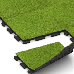 Questo perché il materiale delle lastre esterne a clip - il granulato di gomma e il poliuretano - è assolutamente resistente all'acqua e al gelo. Con una superficie in granulato di gomma EPDM, le lastre esterne a clip sono persino resistenti ai raggi UV a lungo termine e sono in gran parte resistenti ai colori.