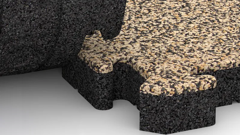 Die Platten sind UV-beständig, frostfest und unempfindlich gegenüber wechselnden Witterungsbedingungen. Regenwasser versickert durch die offenporige Struktur der Platten. Aufgrund der höheren Dichte geschieht dies langsamer als bei der Standardausführung. Dennoch bleibt die Spielfläche funktional, da sich keine dauerhaften Pfützen bilden. Auch unter hoher Beanspruchung bleiben die Platten formstabil und optisch ansprechend.