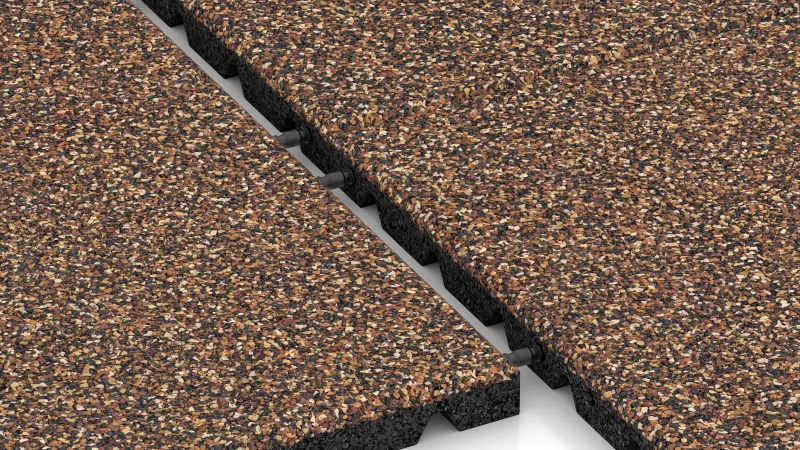 Je nach Ausführung werden die Matten und Platten im Halbverband oder Kreuzverband verlegt. WARCO bietet zwei Verbindungssysteme: Kunststoffdübel oder formschlüssige Puzzle-Verzahnungen. Besonders die Puzzle-Verzahnung verhindert zuverlässig ein Auseinanderdriften der Fläche und sorgt für dauerhafte Lagestabilität.