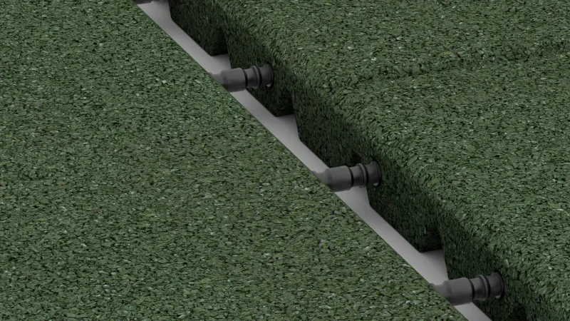 Für den Außenbereich empfiehlt WARCO eine dauerhaft stabile, wasserdurchlässige Tragschicht. Bewährt haben sich Kunststoff-Wabengitter (Kiesgitter) oder ein vorhandener, gebundener und dränfähiger Unterbau wie etwa Drainbeton. Ist die Tragschicht nicht wasserdurchlässig, muss bei witterungsexponierten Flächen ein Gefälle von mindestens 1,5 % zur Entwässerung eingeplant werden. Eine Verlegung auf Schüttgütern wie Sand, Splitt oder Kies ist nicht zu empfehlen – sie verlagern sich unter elastischen Platten und führen zu Instabilität.